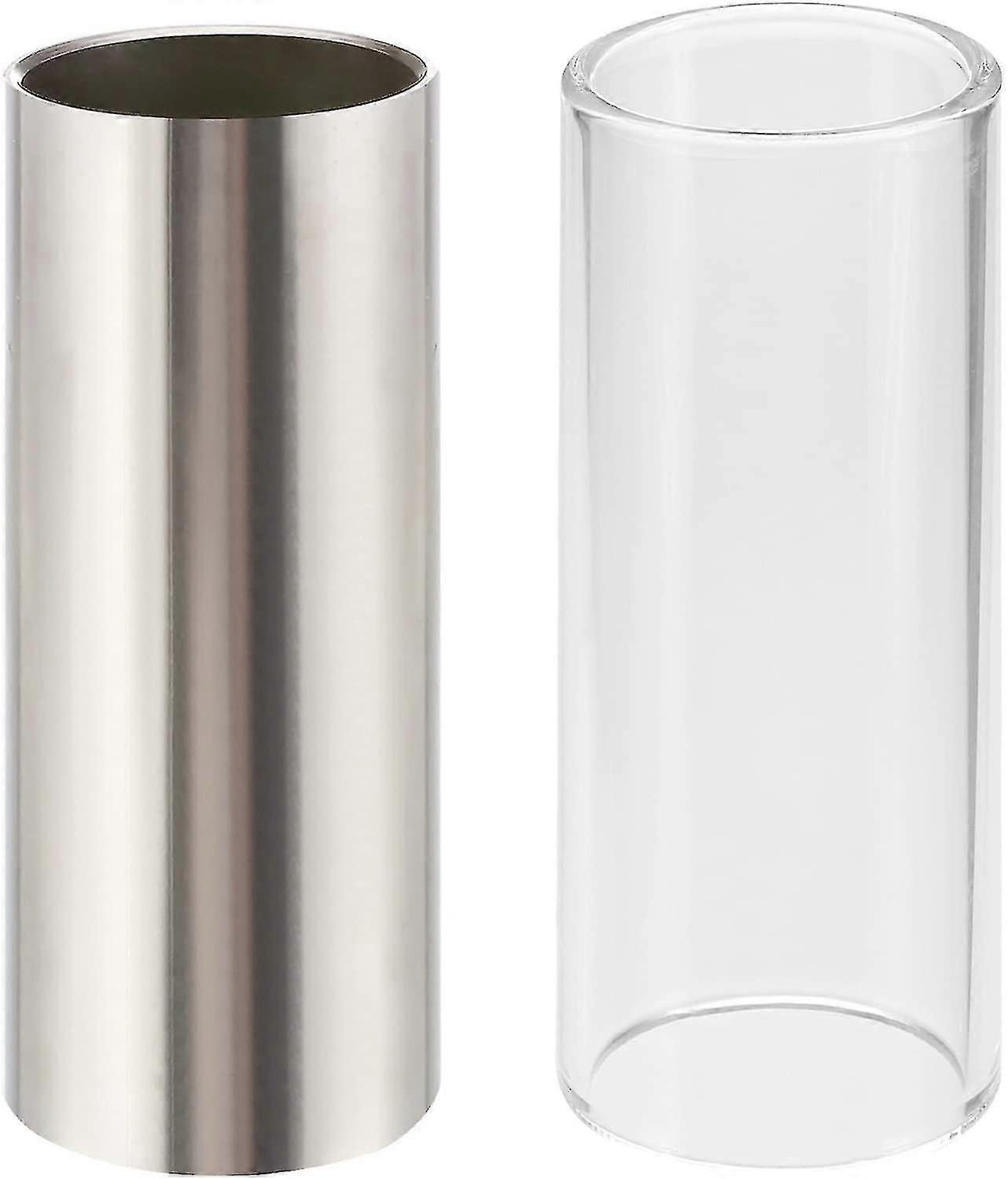 2 Pieces Glass Slide And Stainless Steel Slide In Box For Guitar, Bass, Medium (6 Cm)