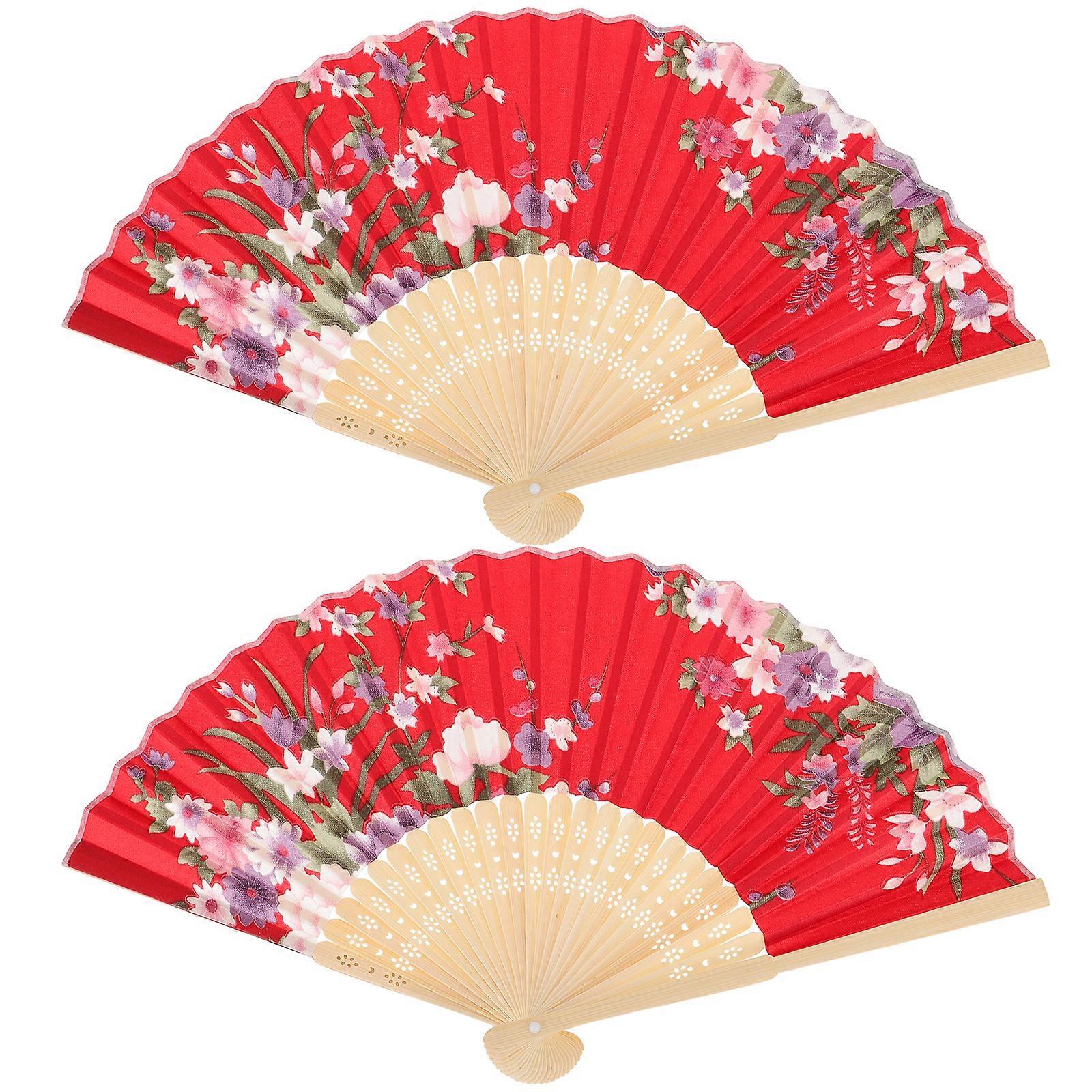 2PCS Chinese Silk Folding Hand Fan Dance Party Home Decoration Folding Fan
