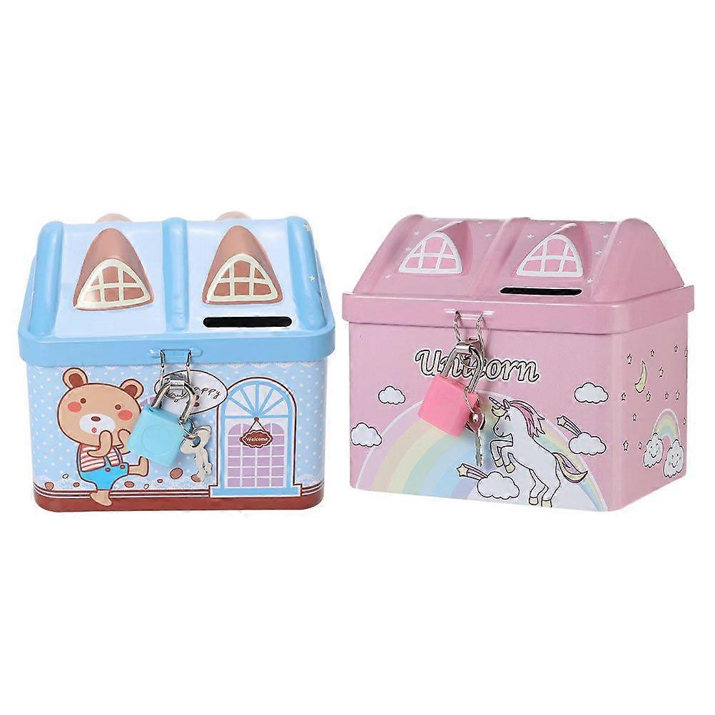 2pcs Cartoon Piggy Banks Lovely House Shaped Coin Storage Boxes With Lock