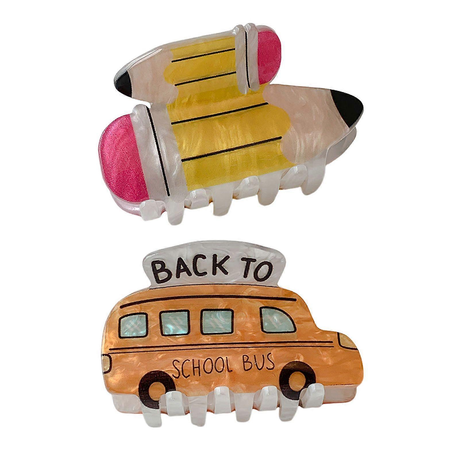 2Pcs Women Hair Claw Pencil Bus Shape Hair Clip Anti-slip Teeth Back Head Shower Hair Barrettes Back to School Accessories