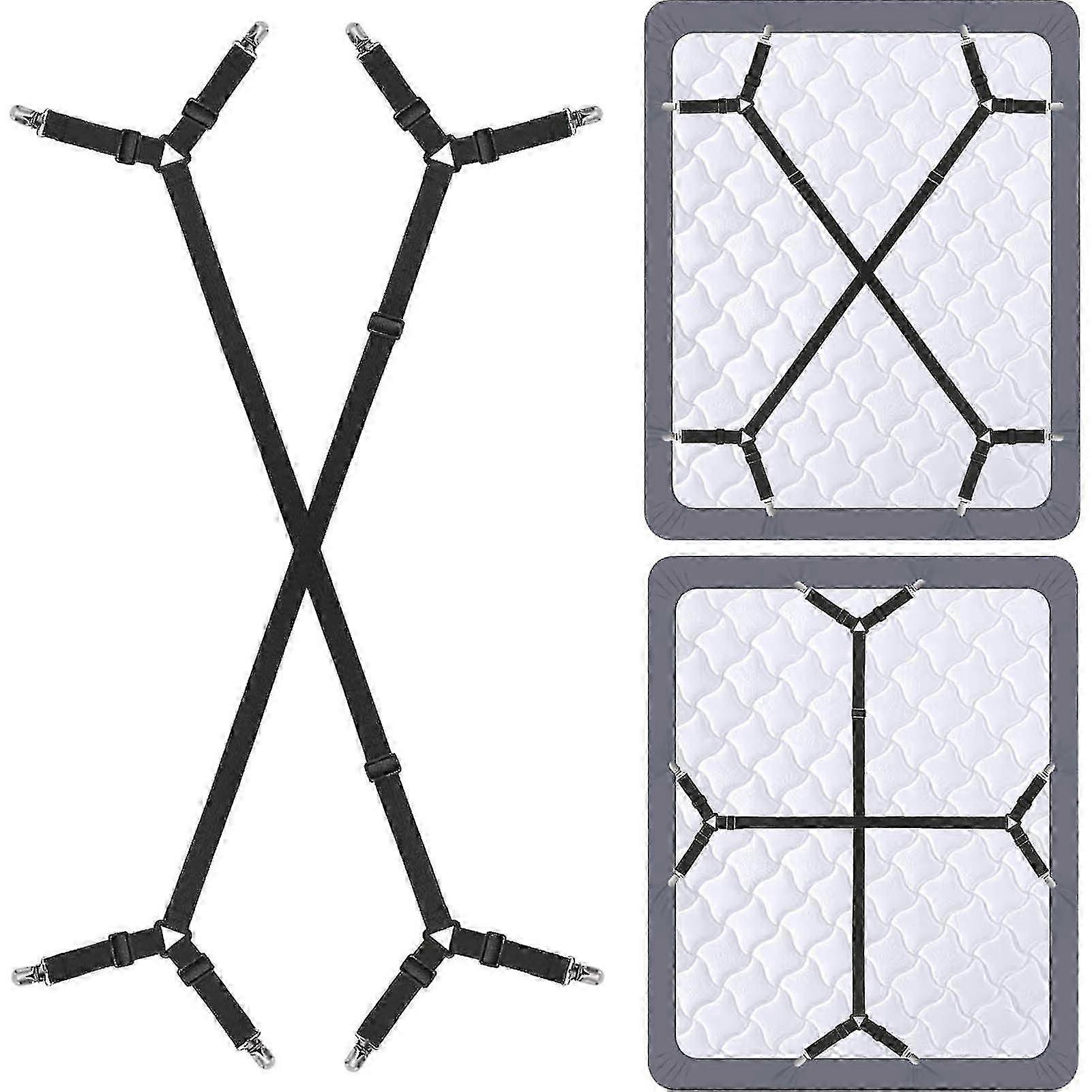 2 Pcs Adjustable Elastic Bed Sheet Straps - Crisscross Clips for Secure Fitting