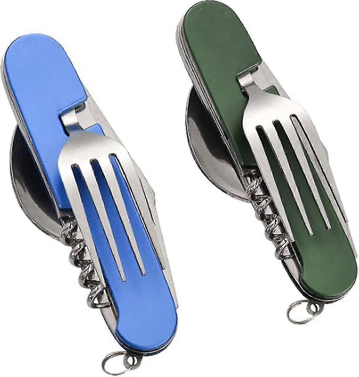 2 Pcs Folding Cutlery, 6 In 1 Folding Cutlery Camping Travel Hiking Picnic