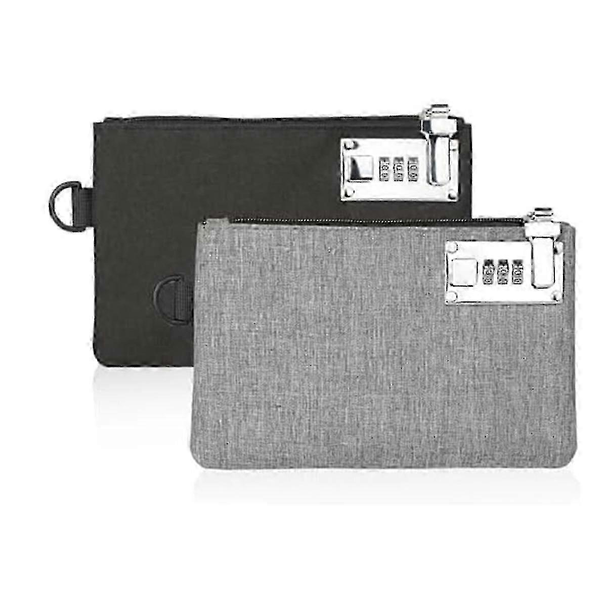 [Lockable Storage]Equipped with a metal combination lock suitable for enhanced privacy, Perfect suitable for safely storing and moving valuables such as cash, medications, credit cards, passports, jewelry, etc. [Sturdy Material]This money bag is made of high-quality nylon, with strong zippers, and portable, and can be used suitable for a long time. [Compact Size]these money bags are the Perfect travel size. Conveniently fits in your purse or backpack to keep your belongings safe while . [Wide range of uses]It can be used as a coin wallet, jewelry bag, bank bag, notary stamp bag, travel lock bag, etc. Perfect suitable for personal, home and office use. size: 12.7 x 20.3cm Material: nylon colour: black + gray Package Contents: 2 x lockable bag Only the above package content, other products are not included. Note: Light reflection and different displays may cause the color of the item in the picture a little different from the real thing. The measurement allowed error is +/- 1-3cm.