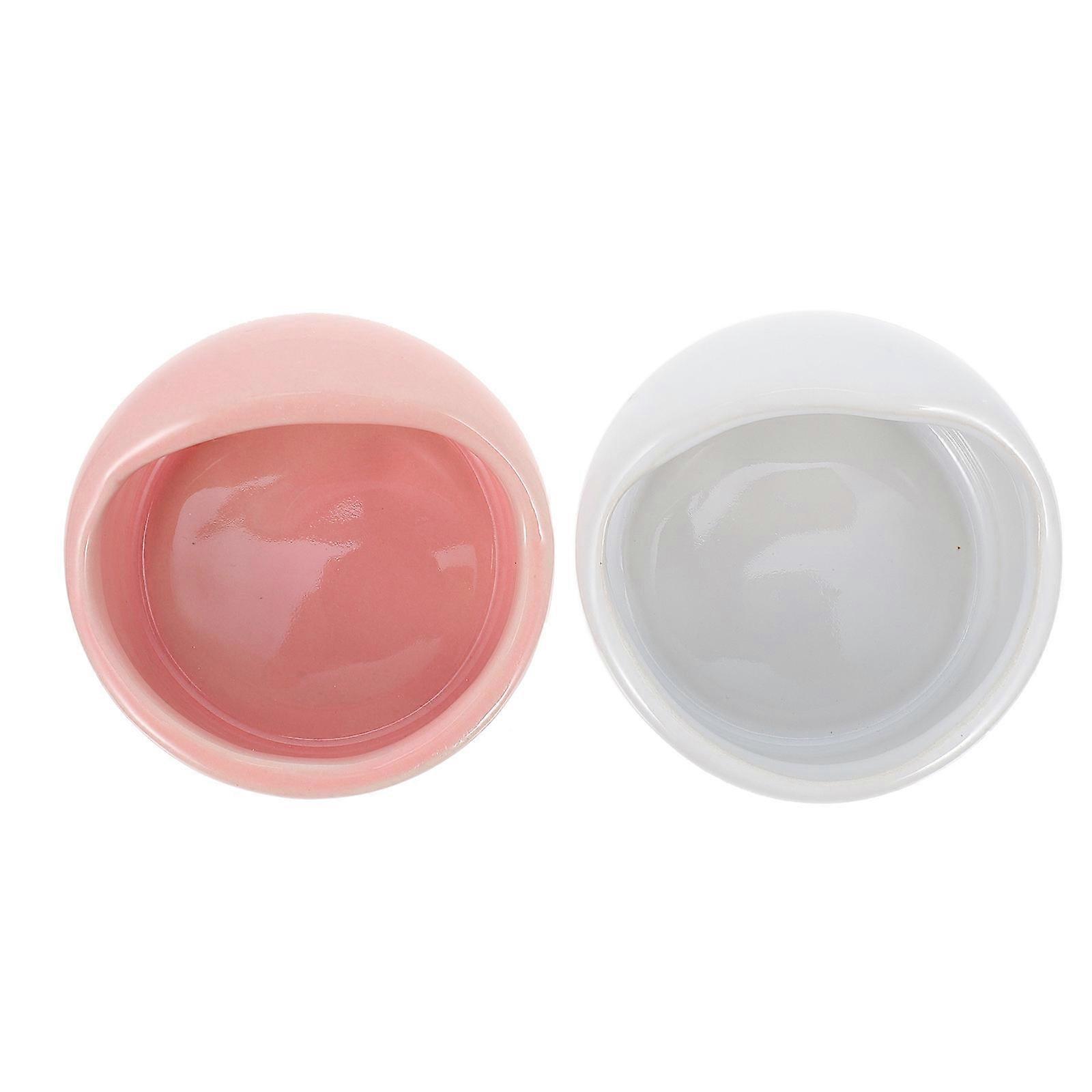 2pcs Ceramic Hamster Bowls for Feeding, Durable & Easy to Clean, Suitable for Hamsters, Chinchillas, and Small Animals, Pink & White