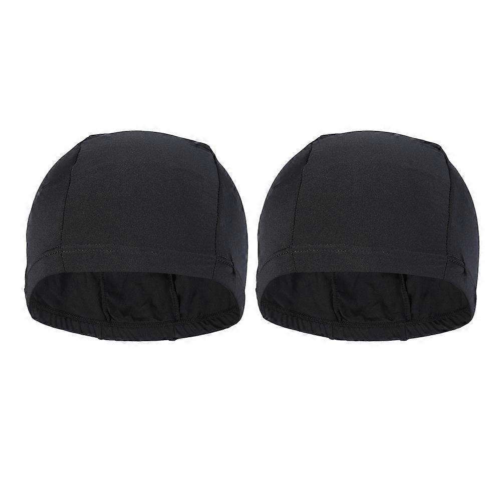 2pcs Stretchable Polyester Swim Comfortable Fit Swimming Caps Shower Caps for Adult Men Women Long Hair(Black)