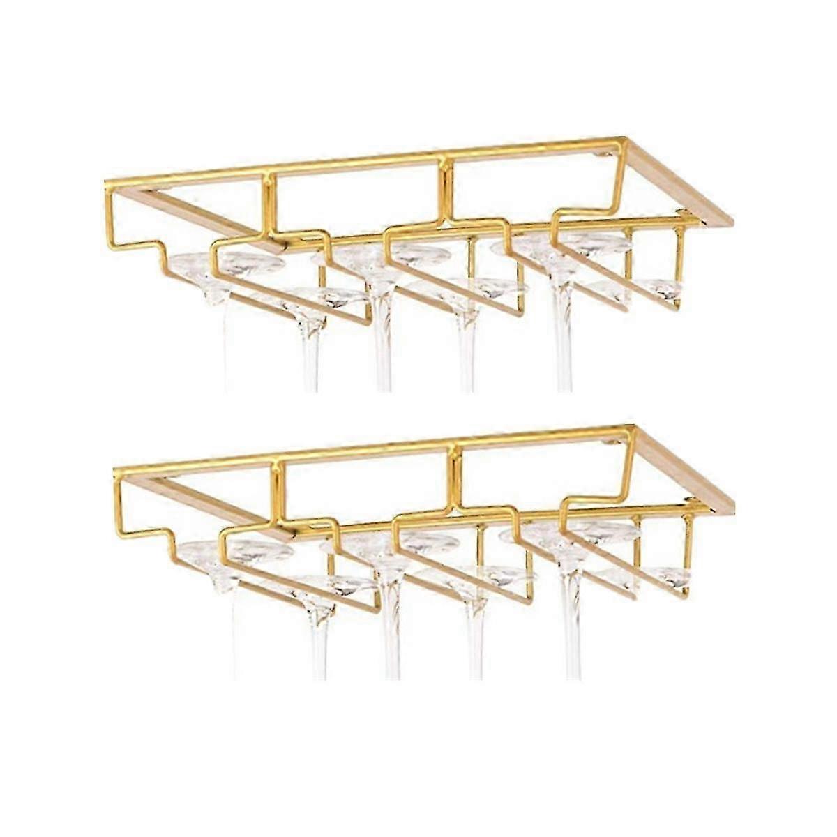 SPACE SAVING & EASY ACCESS: this under-cabinet wire glass hanging storage rack ensures you have more space inside the kitchen cabinet,partition board, wine cabinet,and it makes your wine glasses well displayed and easy access.Suitable for any shelves with 1inch thickness or lessEASY INSTALLATION STEMWARE RACK: comes in a screw-free simply design for easy assemble,and thanks to its easy slide on/off hanging arm,each hanging rack conveniently holds 6 different sizes of red wine glasses,champagne glasses and cocktail glasses.Get now toSAFE TO USE WINE GLASS HOLDER: The screw help fix of rack on cabinet, which avoid hook stretch down due to the cup weight.Has 2 anti-skid pads on the inner side will keep your wine glasses securely without worrying about accidental slippage or falling,the black finish prevents any scratching or chipping on the surface of the wine glass. It's super easy to clean and not stained AFFORDABLE GIFT FOR WINE LOVERS: this storage holder rack provides a decent holding point and is very stylish.The sturdy materials good strength and . this wine glass rack hanger features a hollow line design for not accumulating water, and it looks very elegant and will complement different kitchen and home bar decorsColour:GoldMaterial:ironSize:About 30x22.5cmPackage Contents:2 * Goblet wine rackOnly the above package content, other products are not included.Note: Light reflection and different displays may cause the color of the item in the picture a little different from the real thing. The measurement allowed error is +/- 1-3cm.
