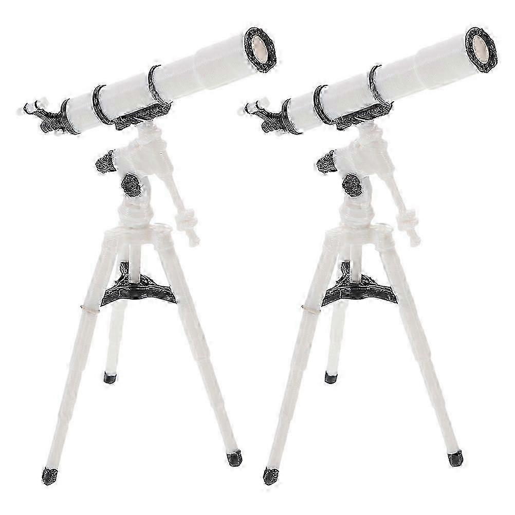 2pcs Miniature Telescope Model Mini Toy Telescope for Dollhouse Kids Toy with Tripod for DIY Miniature Play House and Dollhouse Accessories