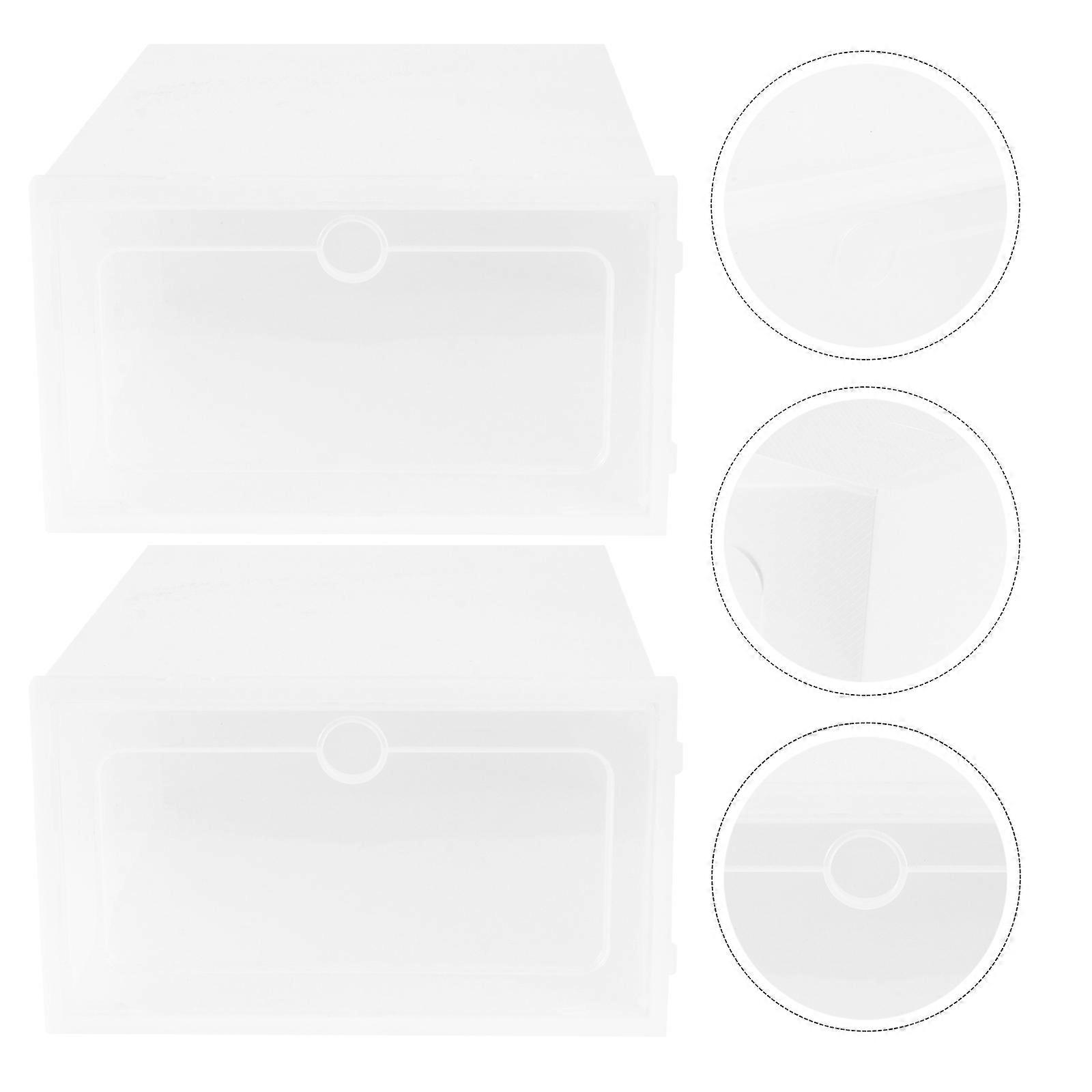 2PCS Thicken Shoes Box Transparent Stackable Shoes Storage Box Plastic Shoe Container - Size L (White)