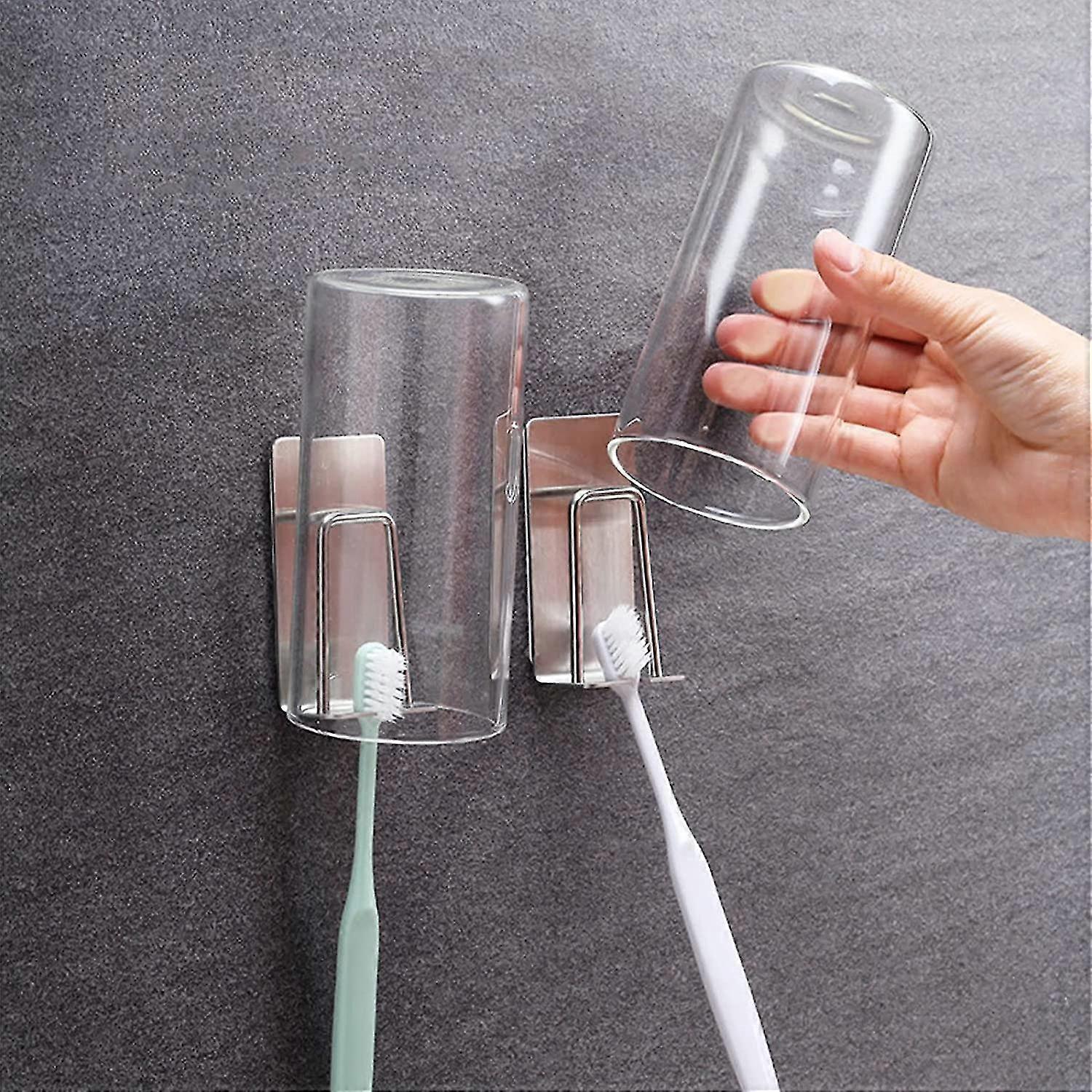 2 pcs wall mounted toothbrush holders no drilling, self adhesive multifunctional toothpaste holder stainless steel toothbrush holder, rustproof toothb