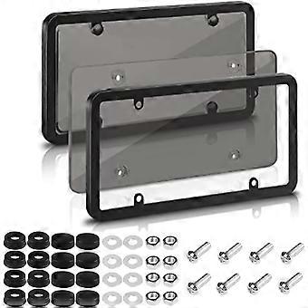 2pcs License Plate Protector Black License Plate Covers, Unbreakable License Plate Covers License Plate Frames with Screw Caps Cover Kit