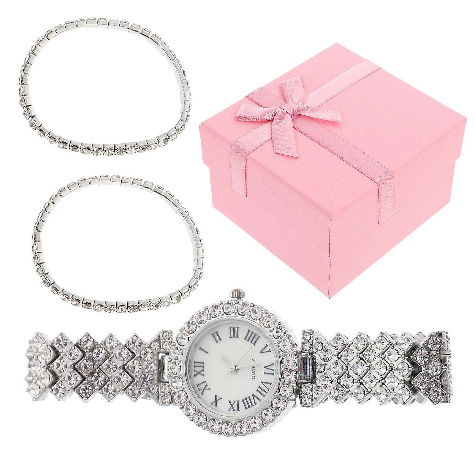 2pcs Rhinestone Watch and Bracelet Set Watch Shiny Quartz Watch for Lady
