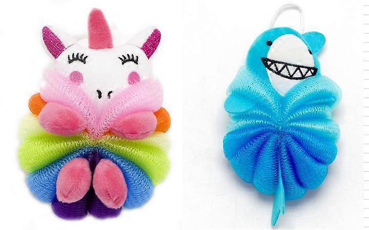 2pcs Bath Shower Loofahs Body Wash Sponge Cartoon Shark Unicorn Exfoliating Shower Sponges for Kids