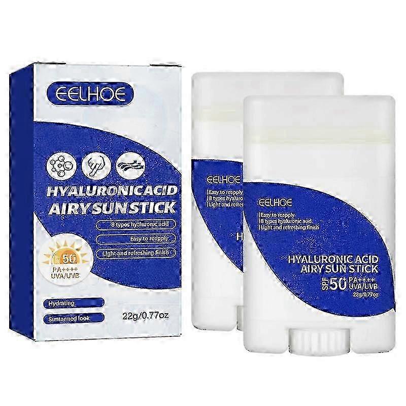 2Pcs Hyaluronic Acid Airy Sun Stick SPF50+ Pa++++ Natural Hyaluronic Acid Sun Cream, Moisturizing Sunscreen for Face