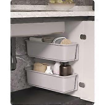 2 pcs Sliding Basket Cabinet for Kitchen Bathroom, Pull Out Wall Mounted Sliding Storage Baskets(Grey)