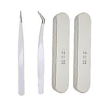 2Pcs Eyelash Extension Tweezers Set Professional Stainless Steel Non Static False Eyelash Tool