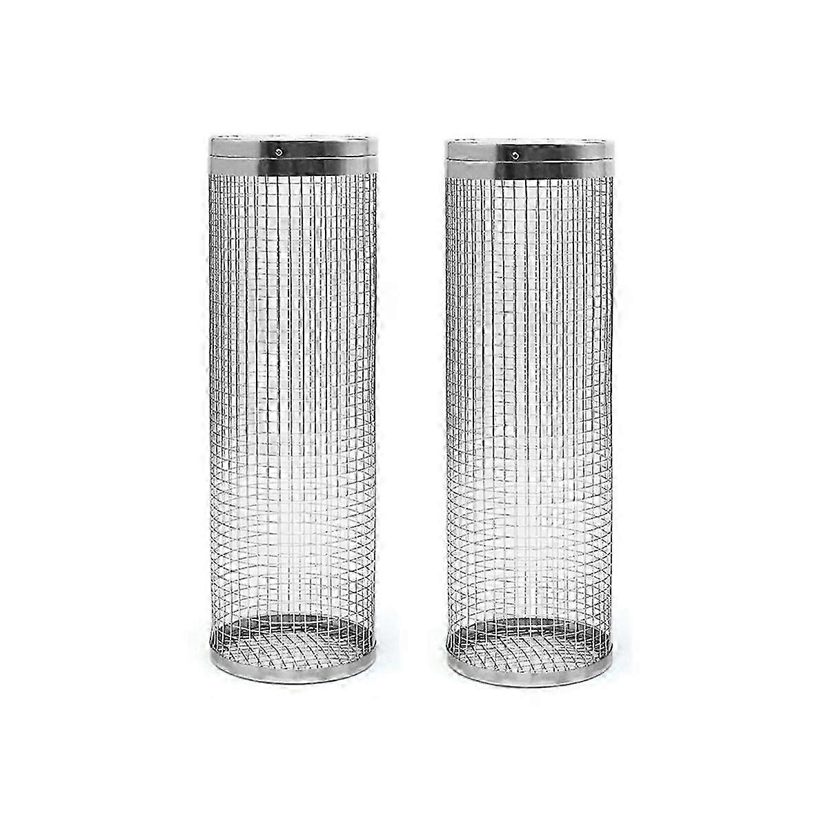 2Pcs Rolling Grilling Basket - Greatest Grilling Basket Ever, Round Stainless Steel Grilling Mesh