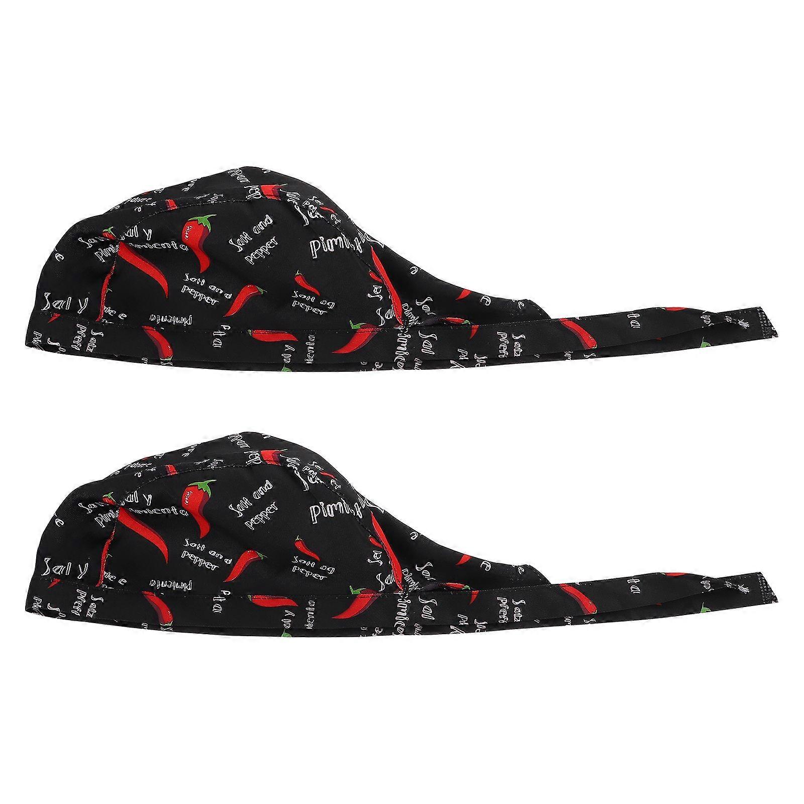 2pcs Chef Turban Kitchen Catering Skull Caps Cotton Chef Baker Ribbon Turban