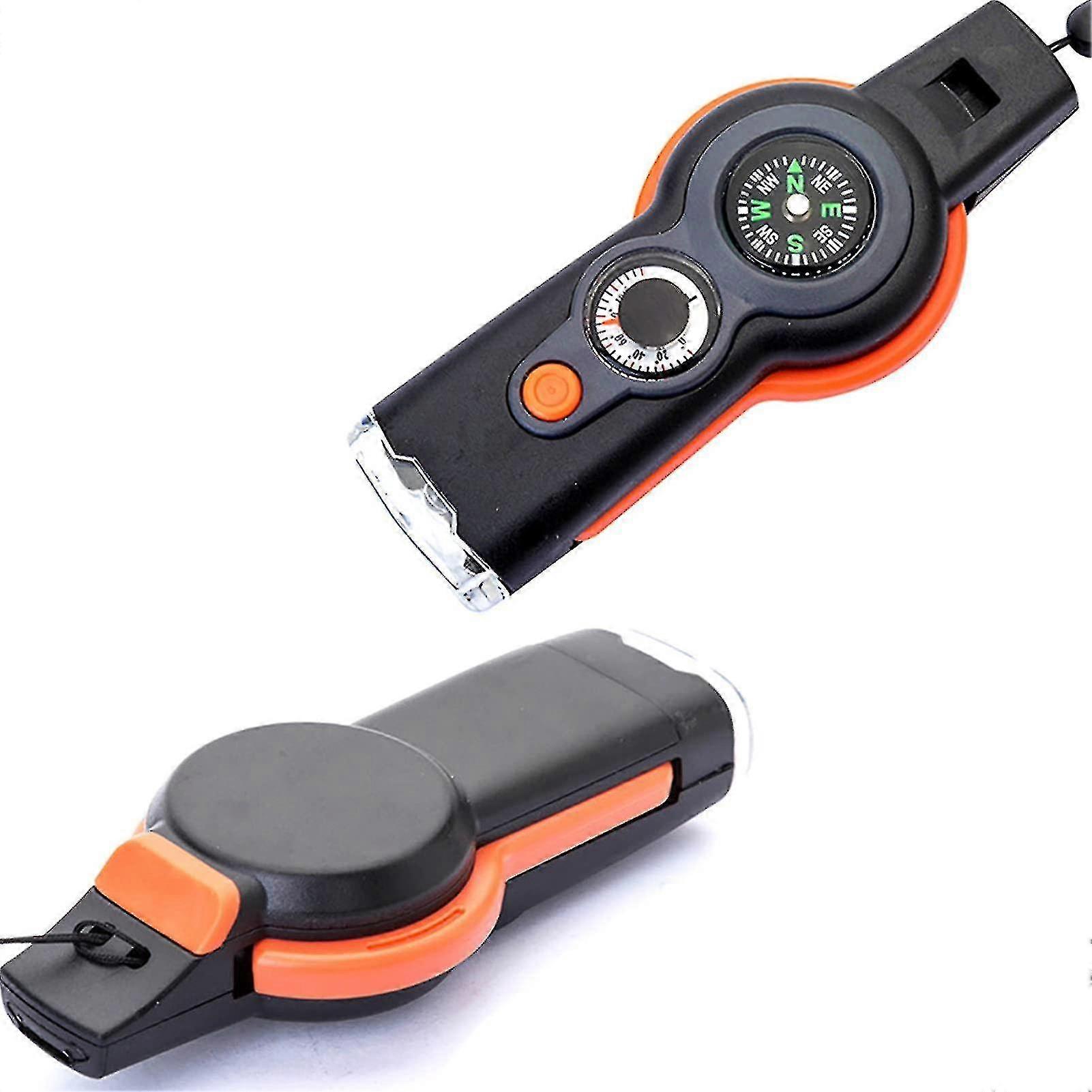 2pc Emergency Survival Whistle With Lanyard, 7 In 1 Survival Multitool Loud Safety Whistle With Led Light, Compass, Etc