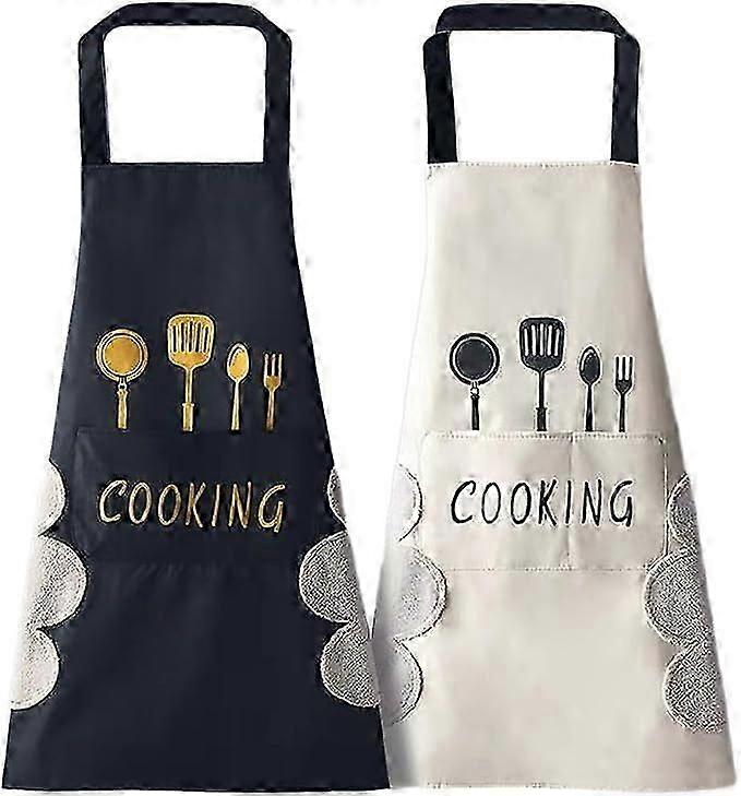 2 pieces cooking apron cotton adjustable cooking apron kitchen apron grilling apron waterproof cooking apron (black and white)