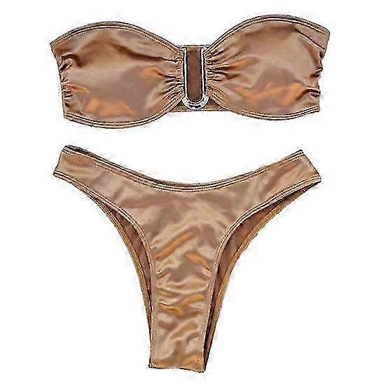 2 Piece Women's Summer Bikini Set - Off Shoulder Strapless Satin Elastic Quick Dry Swimwear with Padded Wireless Top