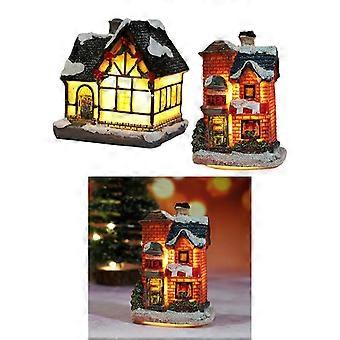2 قطعة عيد الميلاد الثلج البيت LED قرية دمية مجموعة ديكور مهرجان المنزل