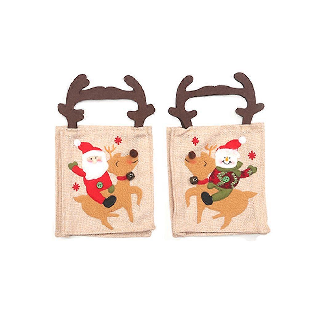 2pcs Christmas Tote Bags Santa Claus Snowman Printed Candy Bag 3D Xmas Handbag Gift Bags for Family Holiday Home Party Decorations