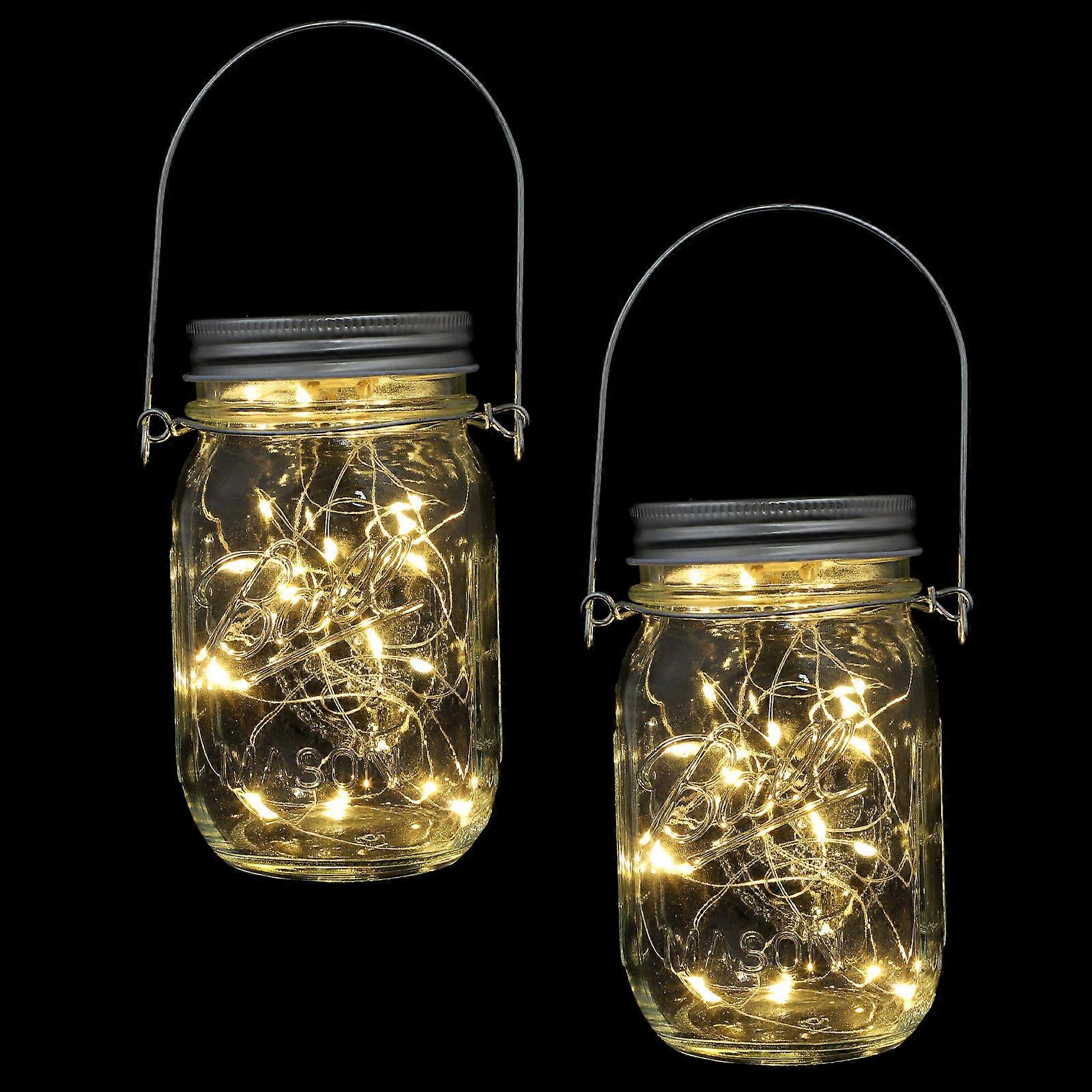 2pcs Outdoor Mason Jar Lights, Hanging Lanterns for Garden, Lawn, Balcony – Warm Decorative Firefly Bottle Lamps for Exterior Use