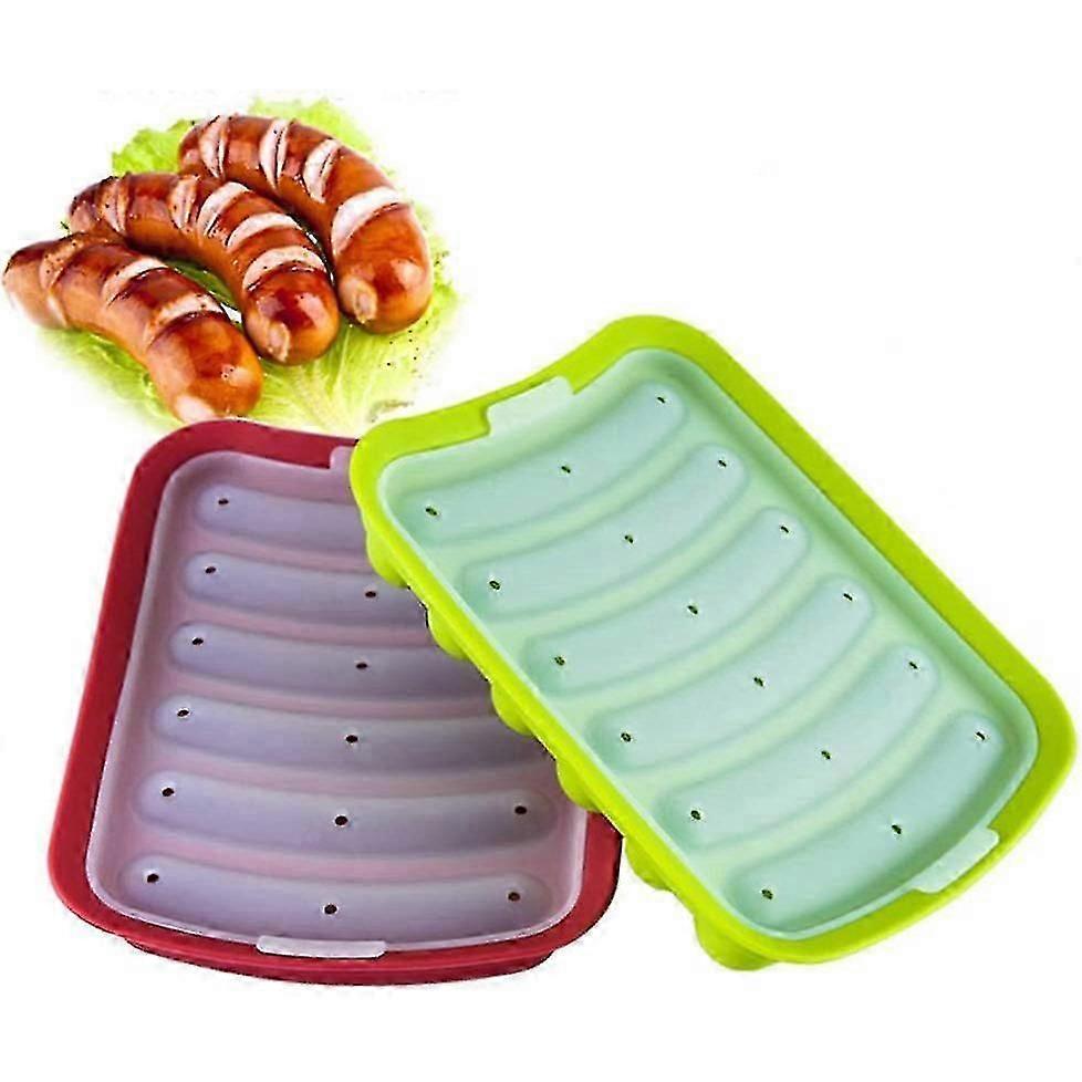 2 PCS Silicone Sausage Mold, DIY Hot Dog Making Mould, 6 Cavity Sausage Tray with Lid