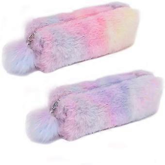 2 Pieces Rainbow Plush Pencil Case Cute Pencil Case Girls Pencil Bag Soft Toy Colorful Storage Bag For Kids, Students, Office, Gift 9*21*6c