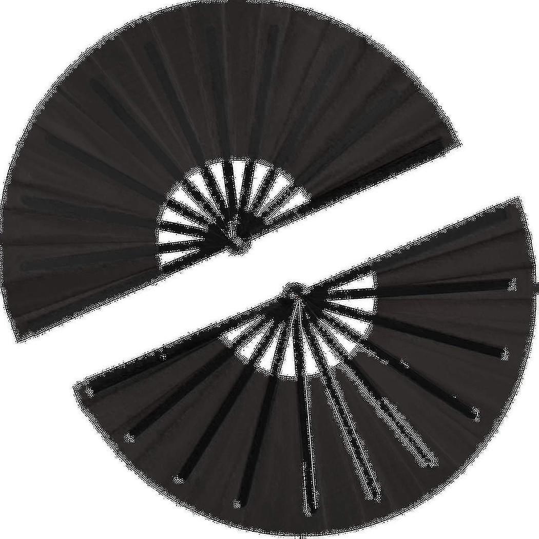 2 Pieces Large Folding Fan Nylon Cloth Handheld Folding Fan Chinese Kung Tai Fan Black Decoration F
