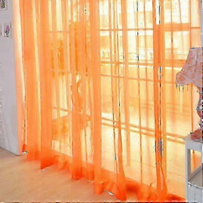 2 Pcs Pure Color Tulle Door Window Curtain Drape Panel Sheer Scarf Valances Orange