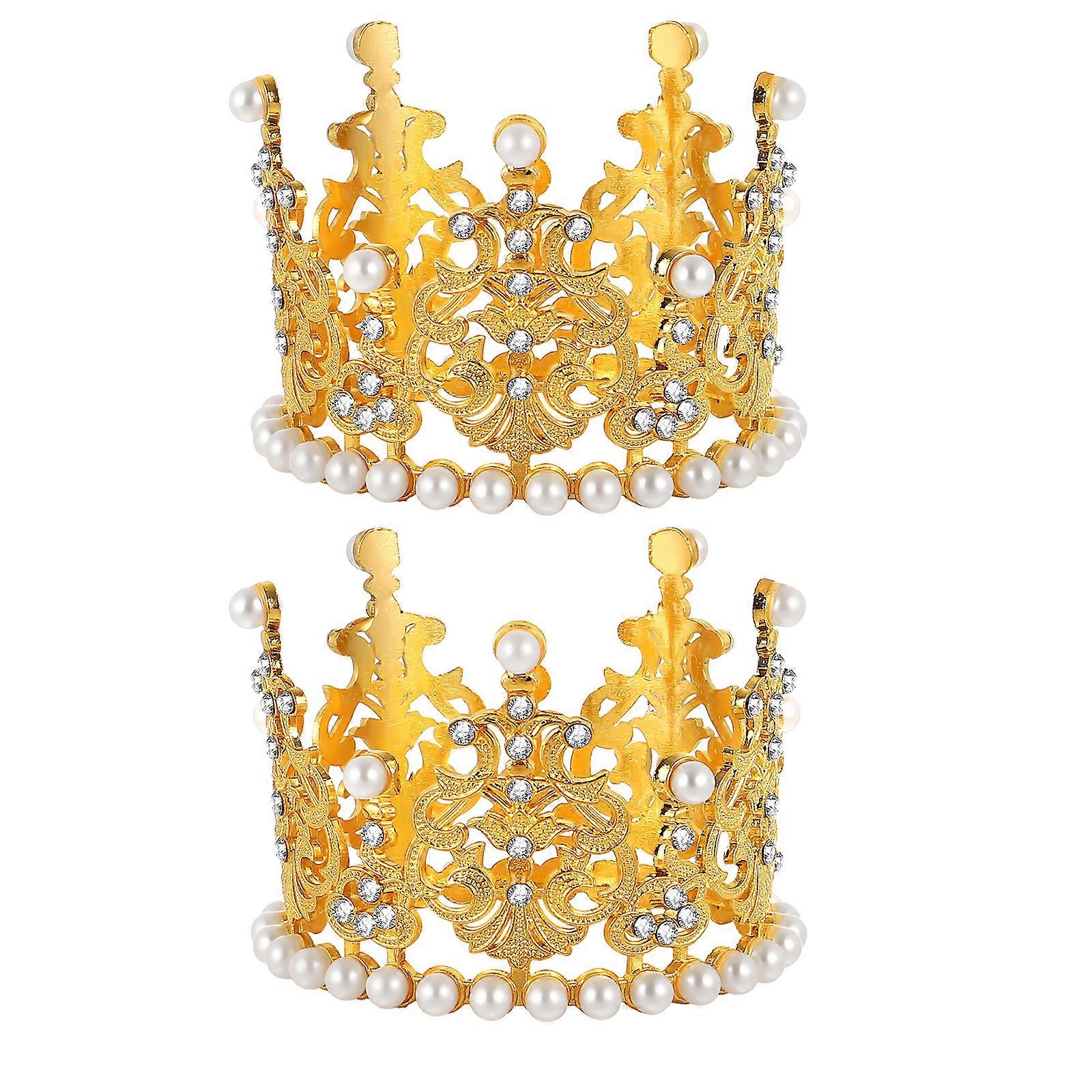 2 Pcs Pearl Headpiece Gold Princess Baby Shower Decorations Crowns Girls Princess Birthday Crowns Tiara