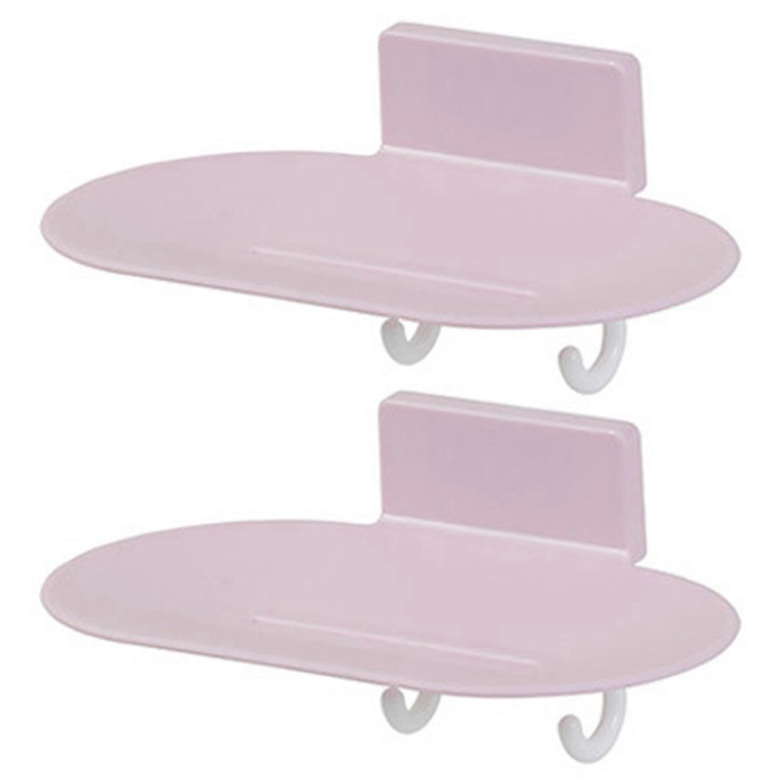 2Pcs/Set Wall Mount Soap Holder with Hook Punch Free Adhesive Hollow Drain Multi-functional Shower Soap Dish Container Saver Storage Rack Bathroom Sup