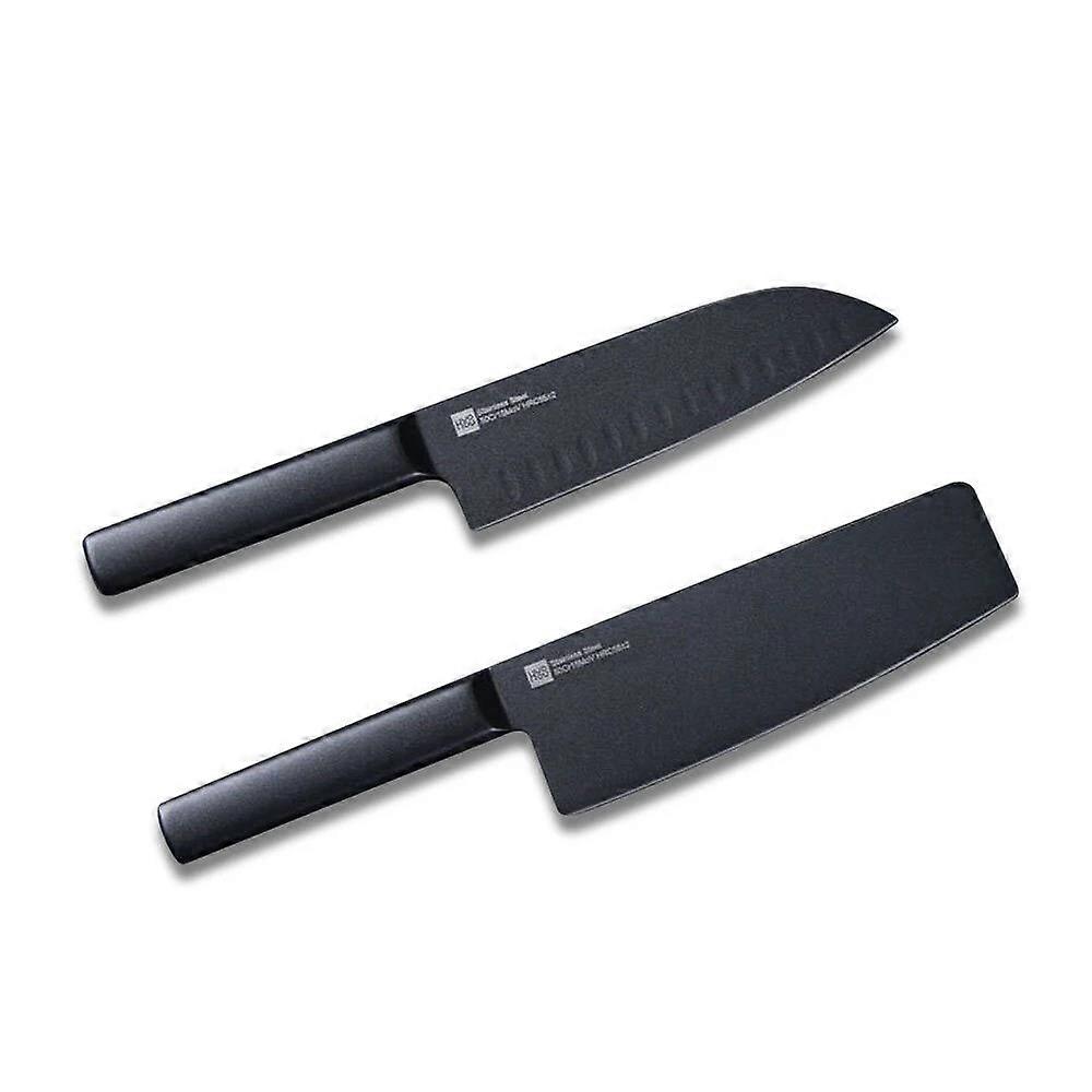2PCS/Set Cool Black Stainless Steel Knife Nonstick Knife Set 7inch Anti-Bacteria Kitchen Chef Knife Slicing Knife From