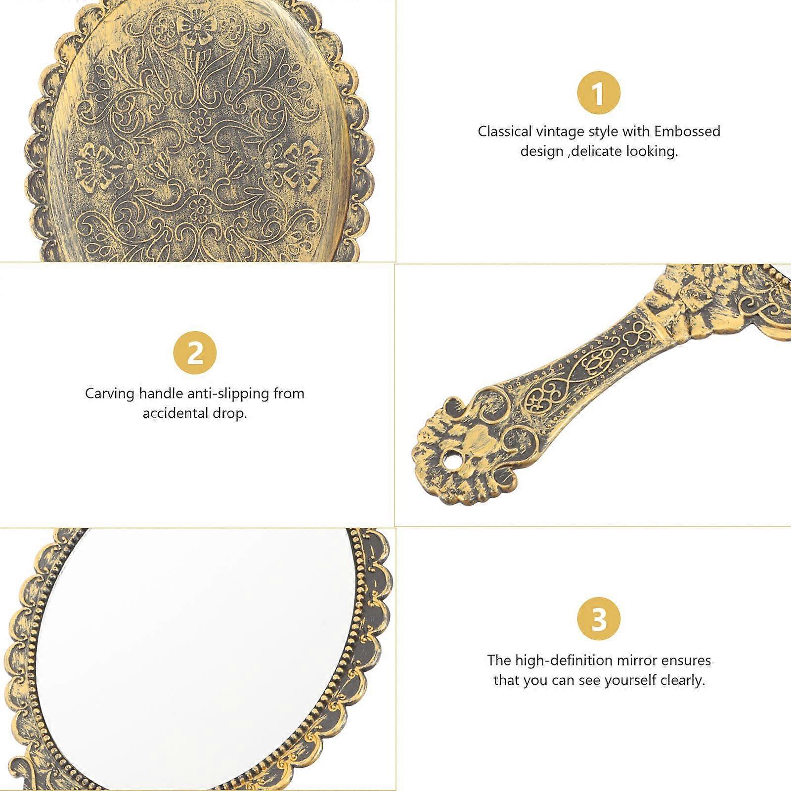 2Pcs Handheld Makeup Mirror Portable Vintage Cosmetic Mirror Creative Looking Glass (Bronze)