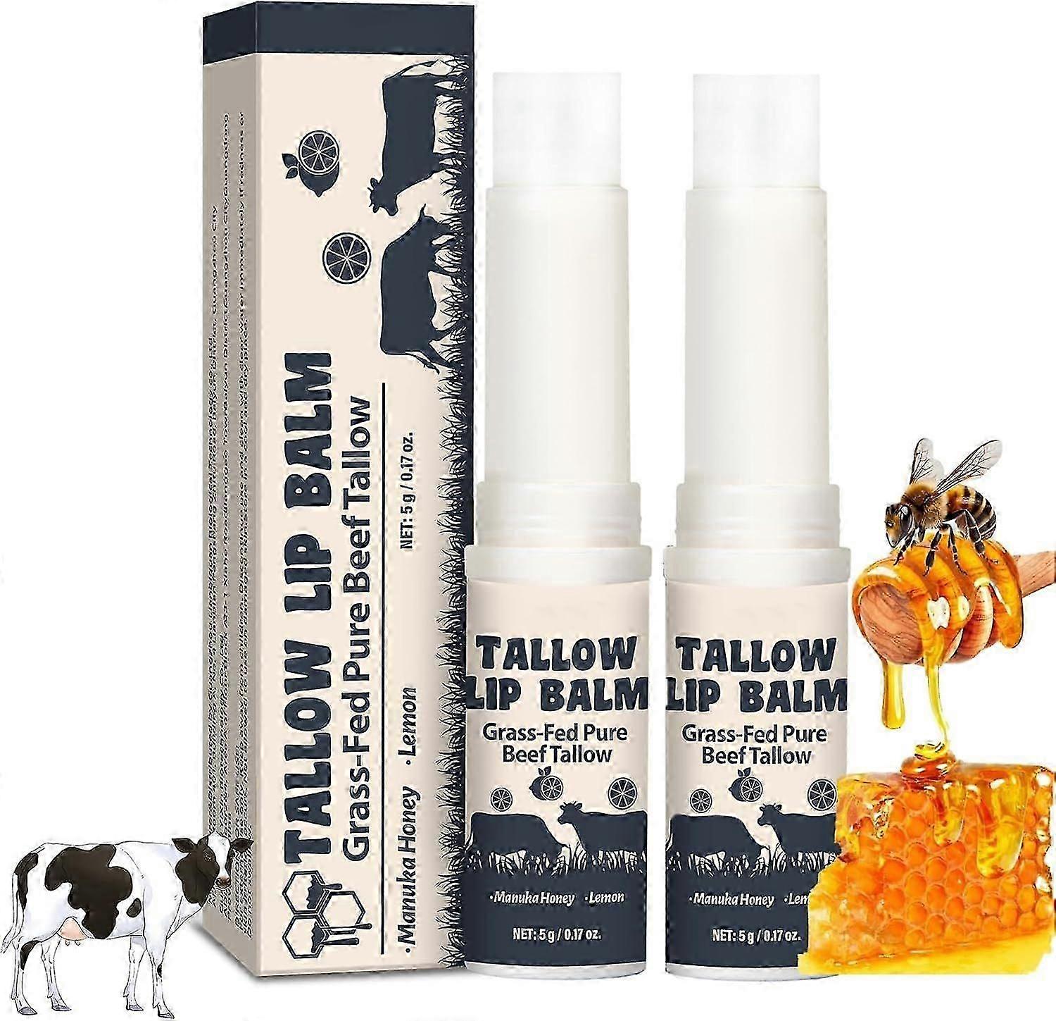 2PCS Beef Tallow Lip Balm, Natural Tallow Beeswax Chapstick, Long Lasting Hydrating Moisturizer Grass-Fed Beef Tallow Lip Balm, Soothes Chapped Dry Li