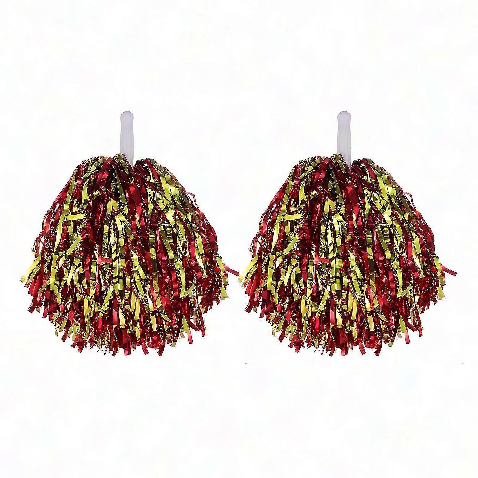 2Pcs Metallic Foil Cheerleader Pom Poms with Handle for Sports Competitions and Celebrations