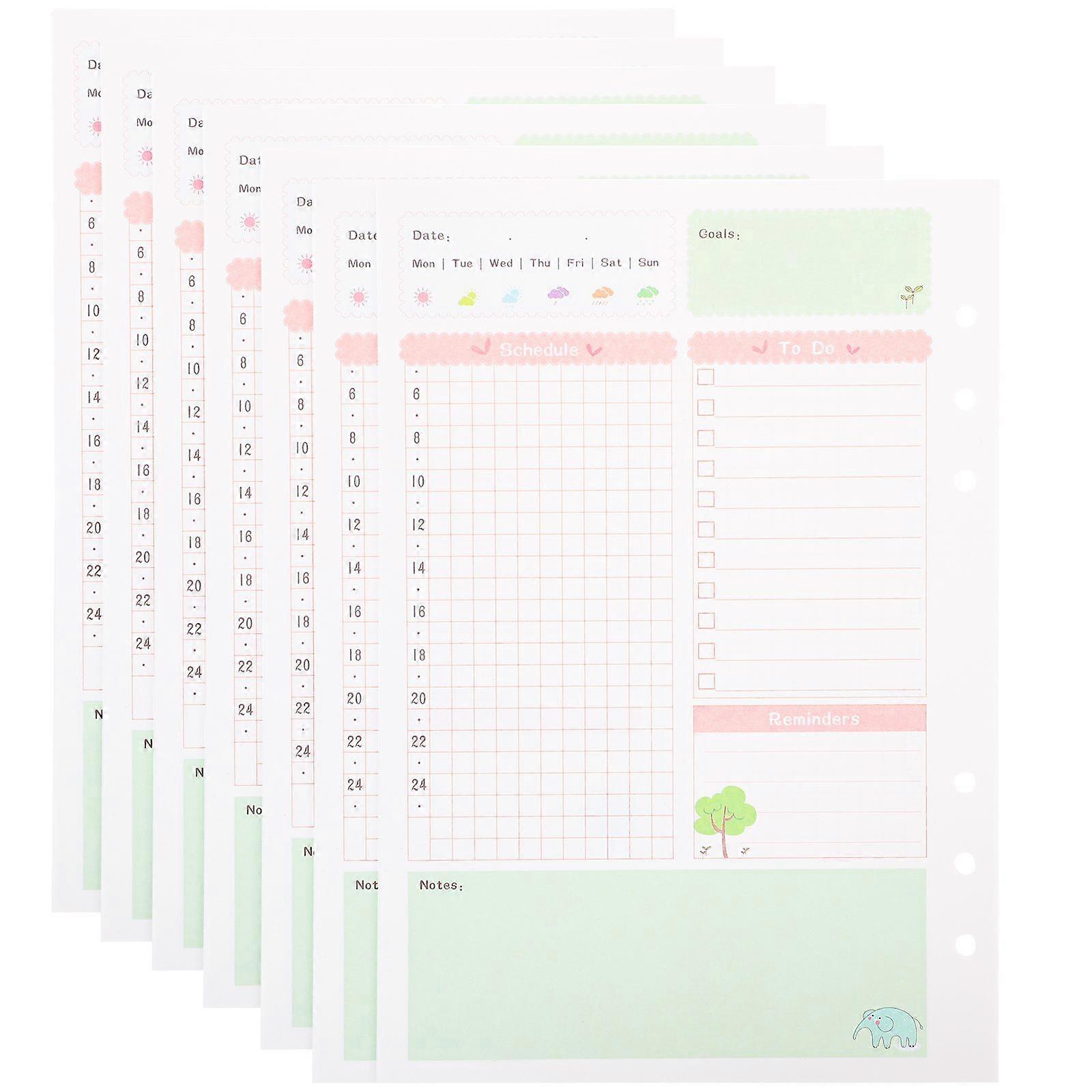 2pcs Colorful A5 Size 6 Holes Loose Leaf Paper Filler Paper Refills for Spiral Notebook Daily Planner Notepad (Daily Plan Pattern)