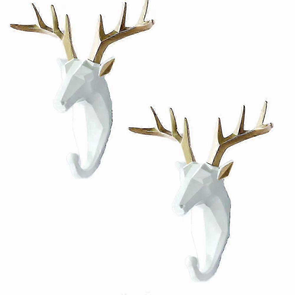 2 Pieces Gold Deer Drawing Punch-free Animal Key Coat Hooks (White)