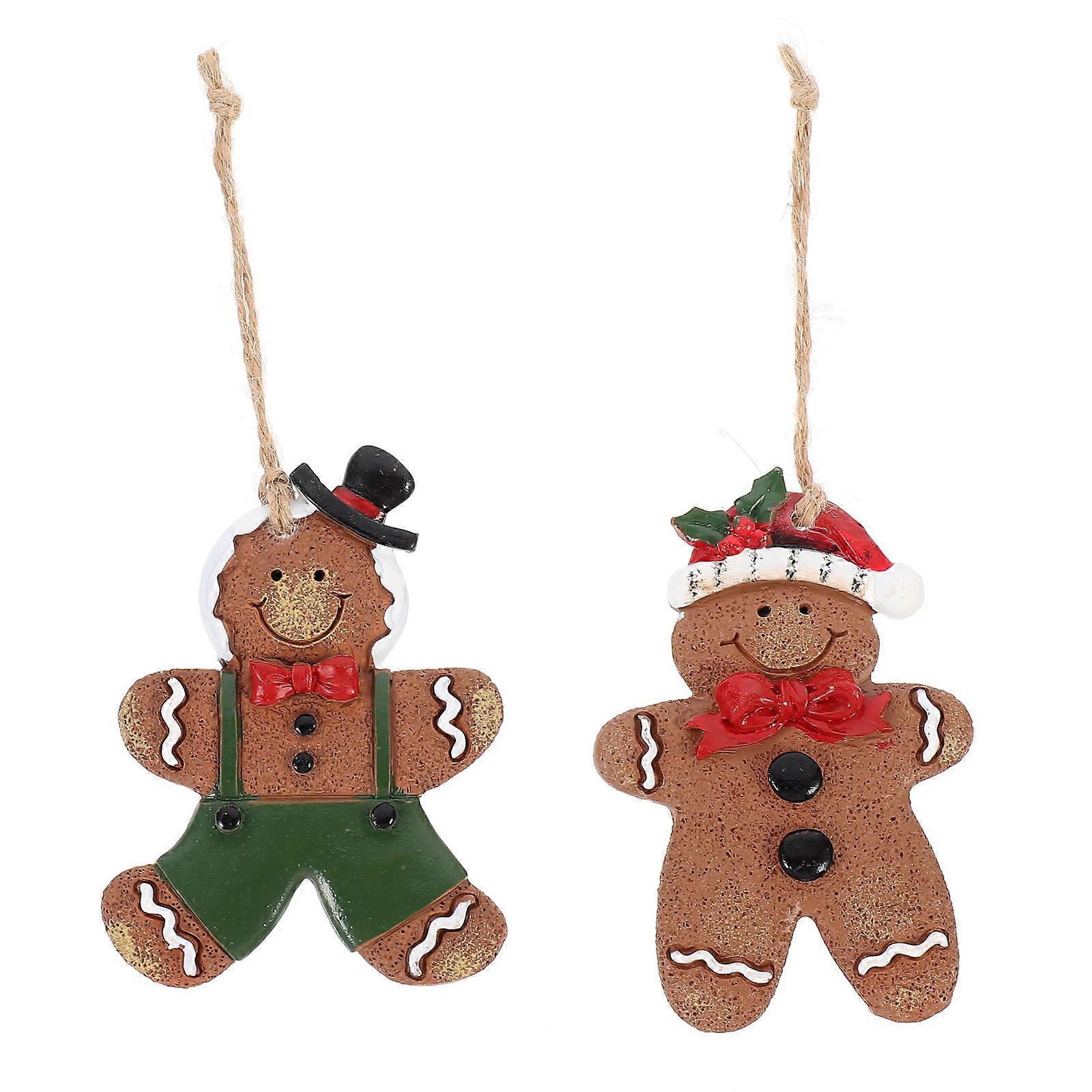 2pcs Resin Gingerbread Men Christmas Tree Ornaments Lightweight Hanging Pendants Festival Home Decor with Pre Made Holes for Easy Decoration