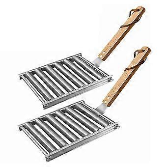 2Pcs Hot Dog Roller for Grill Sausage Roller Rack with Wood Handle