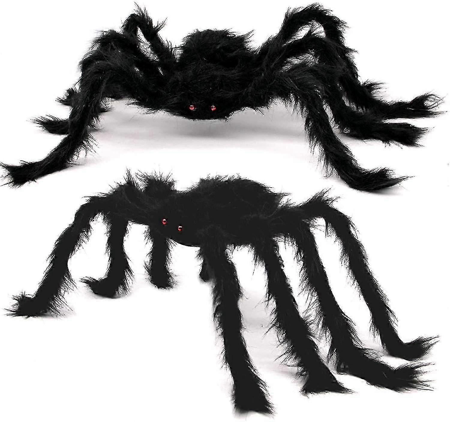 2 Pcs Halloween Plush Spider, 30 Inches Large Black Spider, Scary Spider With Red Eyes, Indoor Outdoor Halloween Decorations For Costume Party Garden