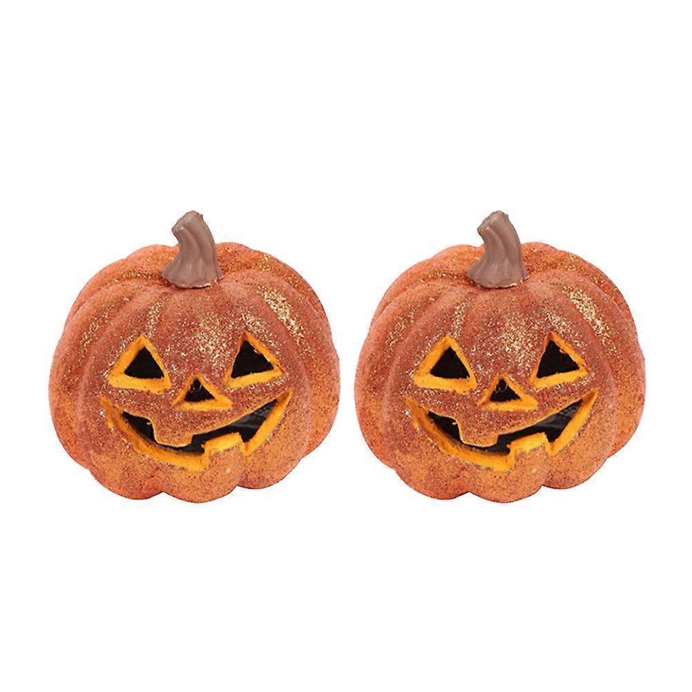 2pcs Halloween Luminous Pumpkin Light Bucket Hollow out Paillette Glitters Decor Play Tricks Props Toy for Party Decor Orange