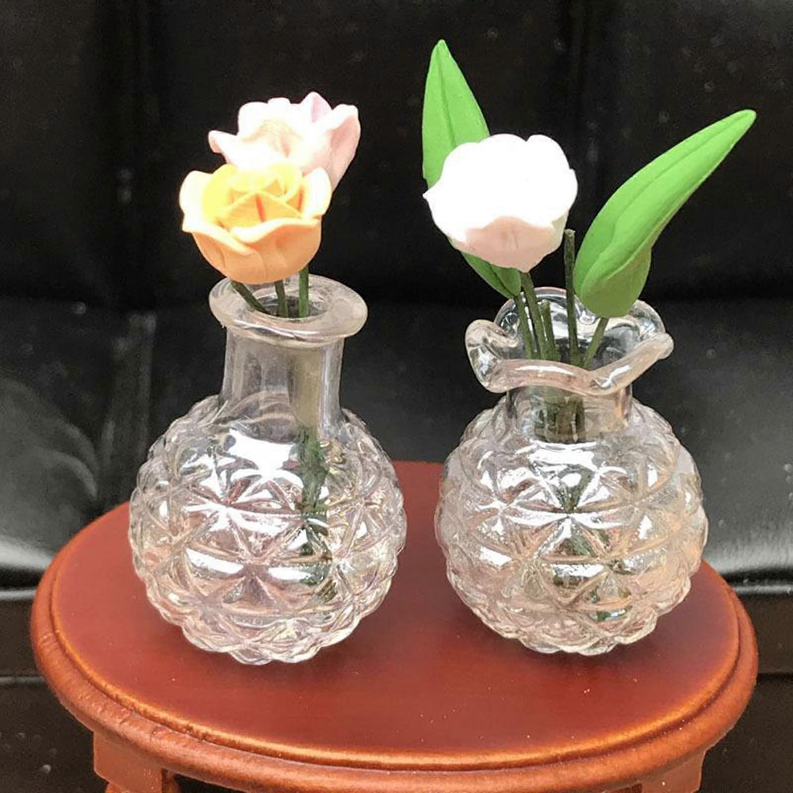 2pcs 1/12 Scale Dollhouse Miniatures Clear Vases Model Decoration Dollhouse