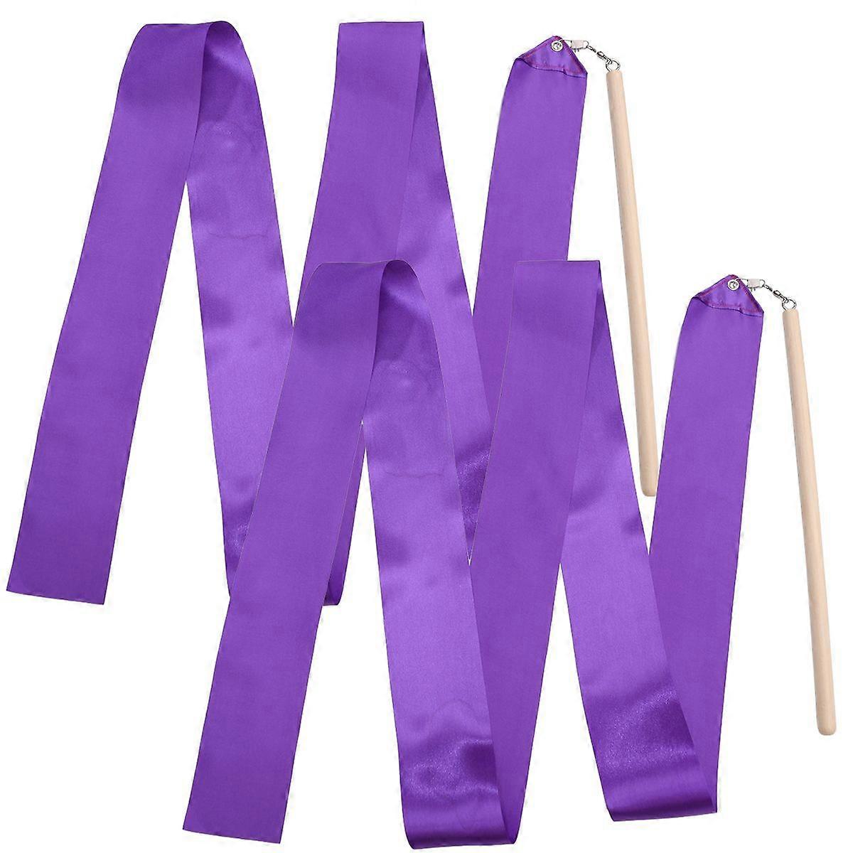 2Pcs 2m Colorful Rhythmic Gymnastics Ribbon Dancing Gymnastics Ribbon Dancing Streamers for Kids Children (Purple)