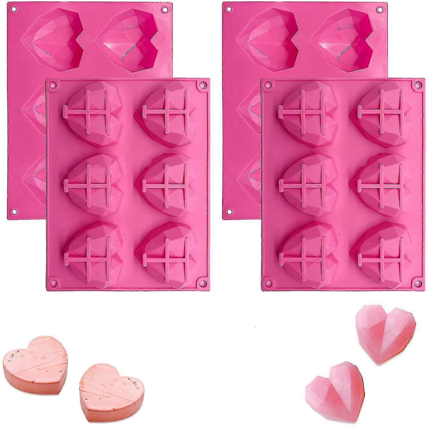 2 Pieces 6 Heart Holes / Diamond Silicone Molds, 3d Foam Cake Pan For Hot Chocolate Bomb Cooking Chocolate Chocolate Valentine