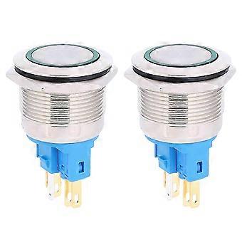 2Pcs DC3-6V 22mm Ring Self Locking 6 Pin Push Button Switch Replacement Accessory(Green )