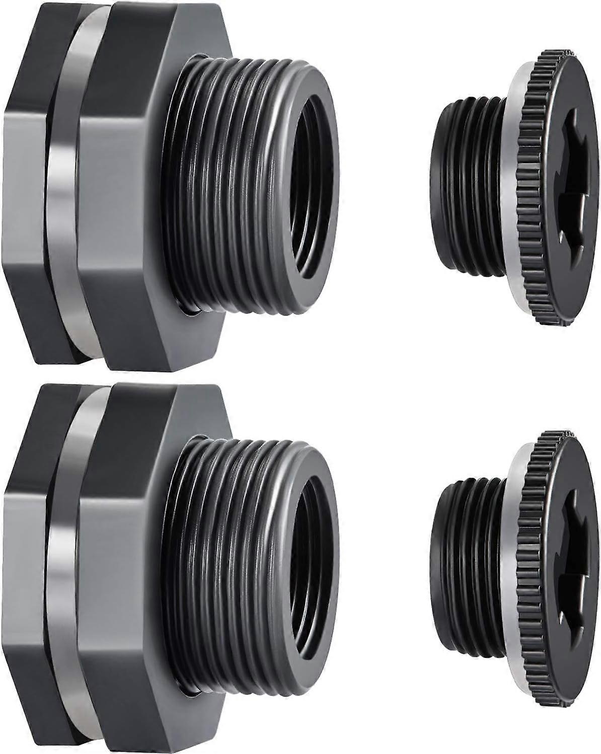 2 Pieces PVC Bulkhead Fitting with Plugs for Rain Barrels, Aquariums, Water Tanks, Tubs, Pools Dark Grey