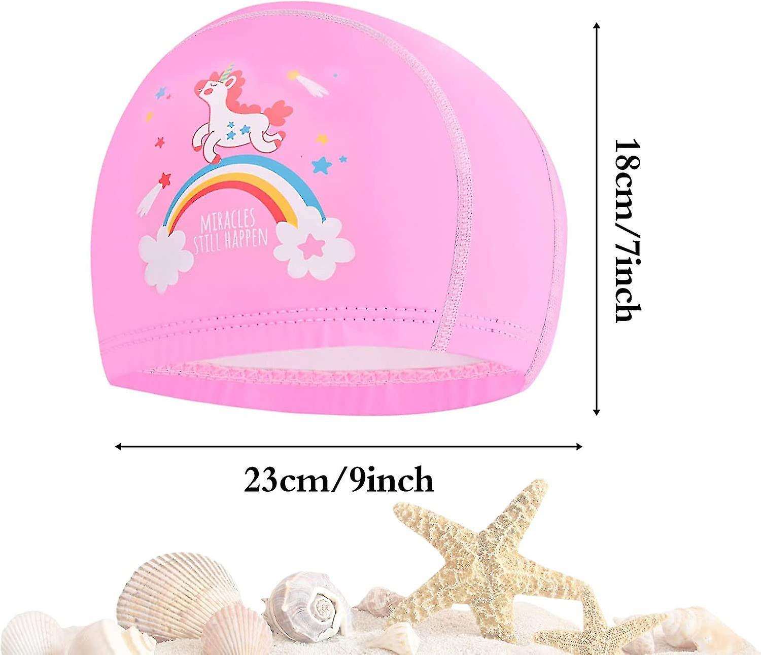 2 Pcs Kids Swimming Cap, Beautiful Cartoon Pu Elastic Shower Cap, Swimming Cap With Coated Pattern, For Youth Boys Girls