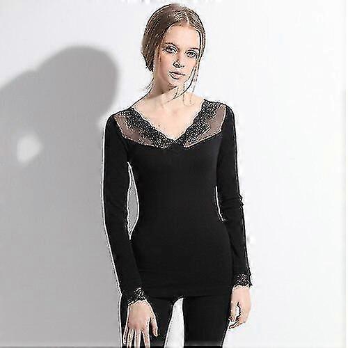 2 Pcs Lace Long Sleeve Johns Cotton Clothes For Winter Women's Warm Thermal Shirt Underwear Set Slim Soft Thick Seamless Shape